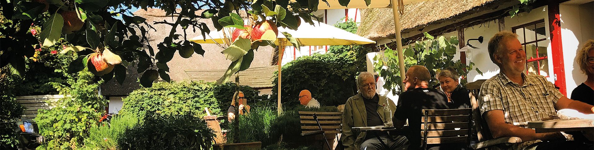 Vores lille café, er åben året rundt, når butikken er åben. Vi har 6 borde under store parrasoller.